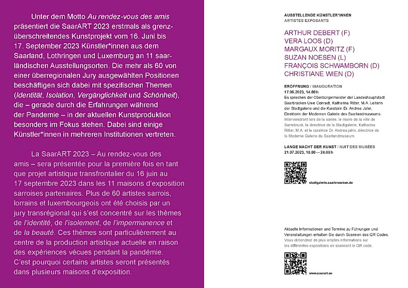 Ab 17. Juni 2023 in der Stadtgalerie Saarbrücken und an 10 weiteren Ausstellungsorten im Saarland und in Berlin mit folgenden Künstler:innen: